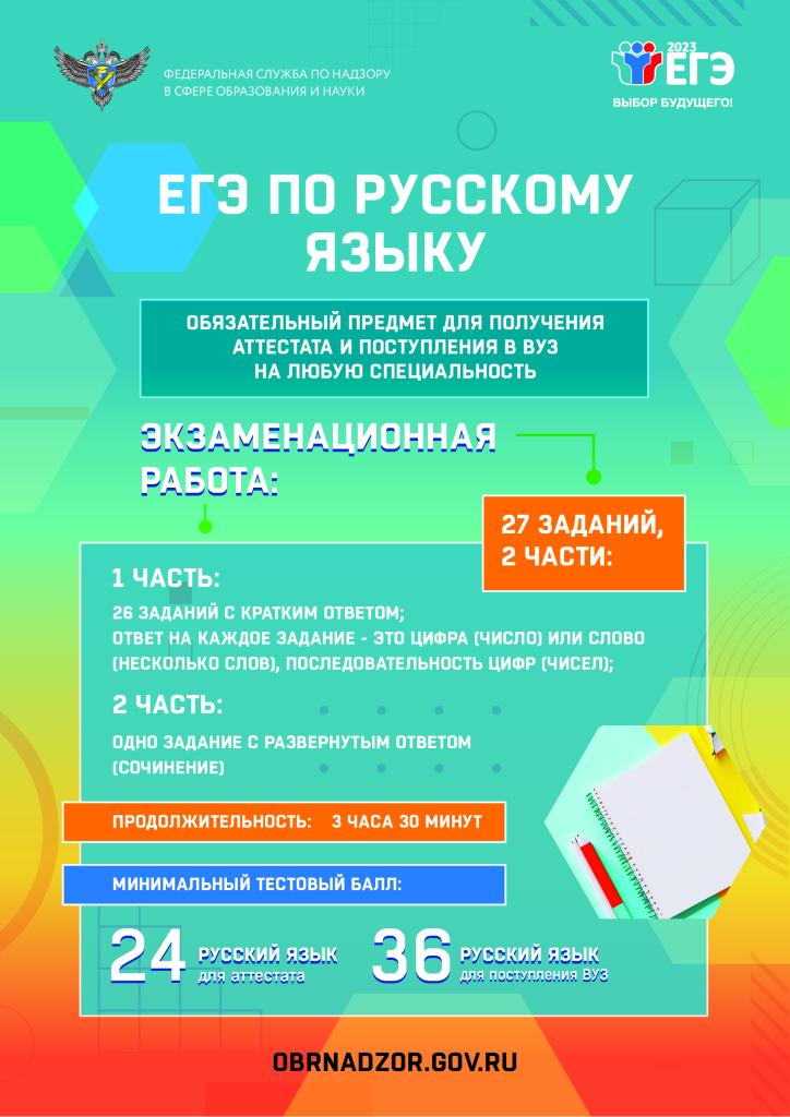 проведение письменно на русском языке (за исключением ЕГЭ по иностранным языкам).